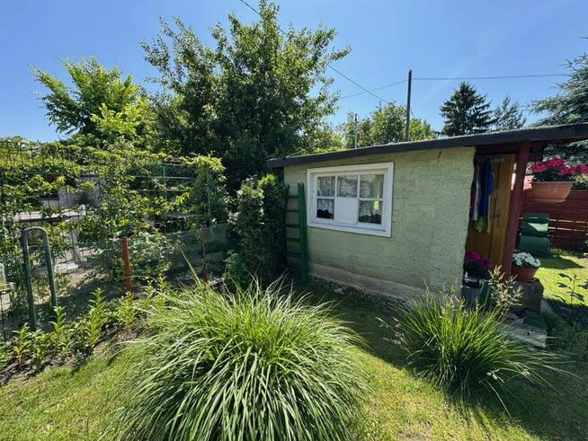 10Działka o pow.300m2 z domkiem murowanym obitym w drewno . W domku pokój i kuchnia , toaleta na zewnątrz. Prąd cały rok, ...